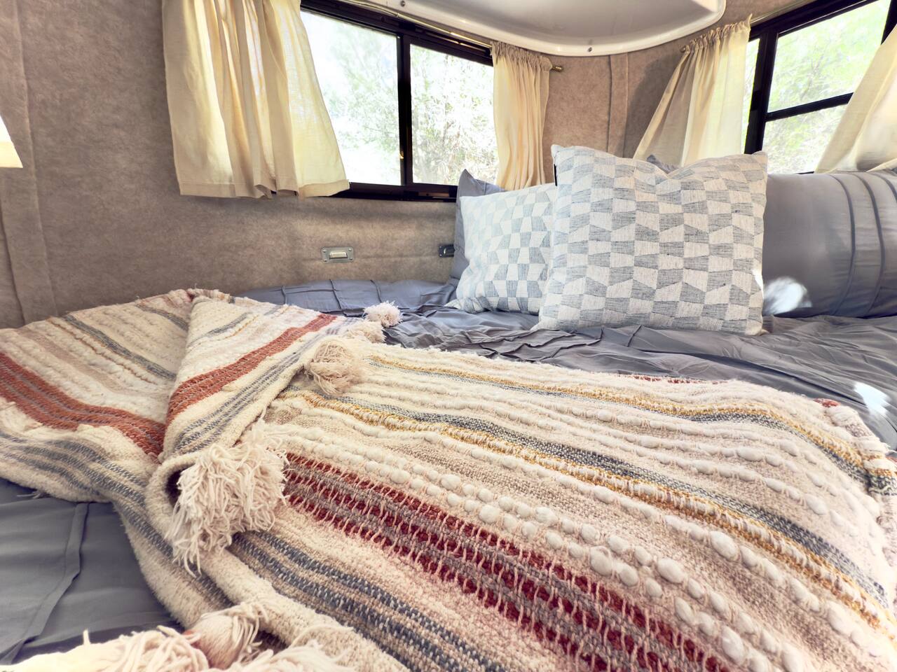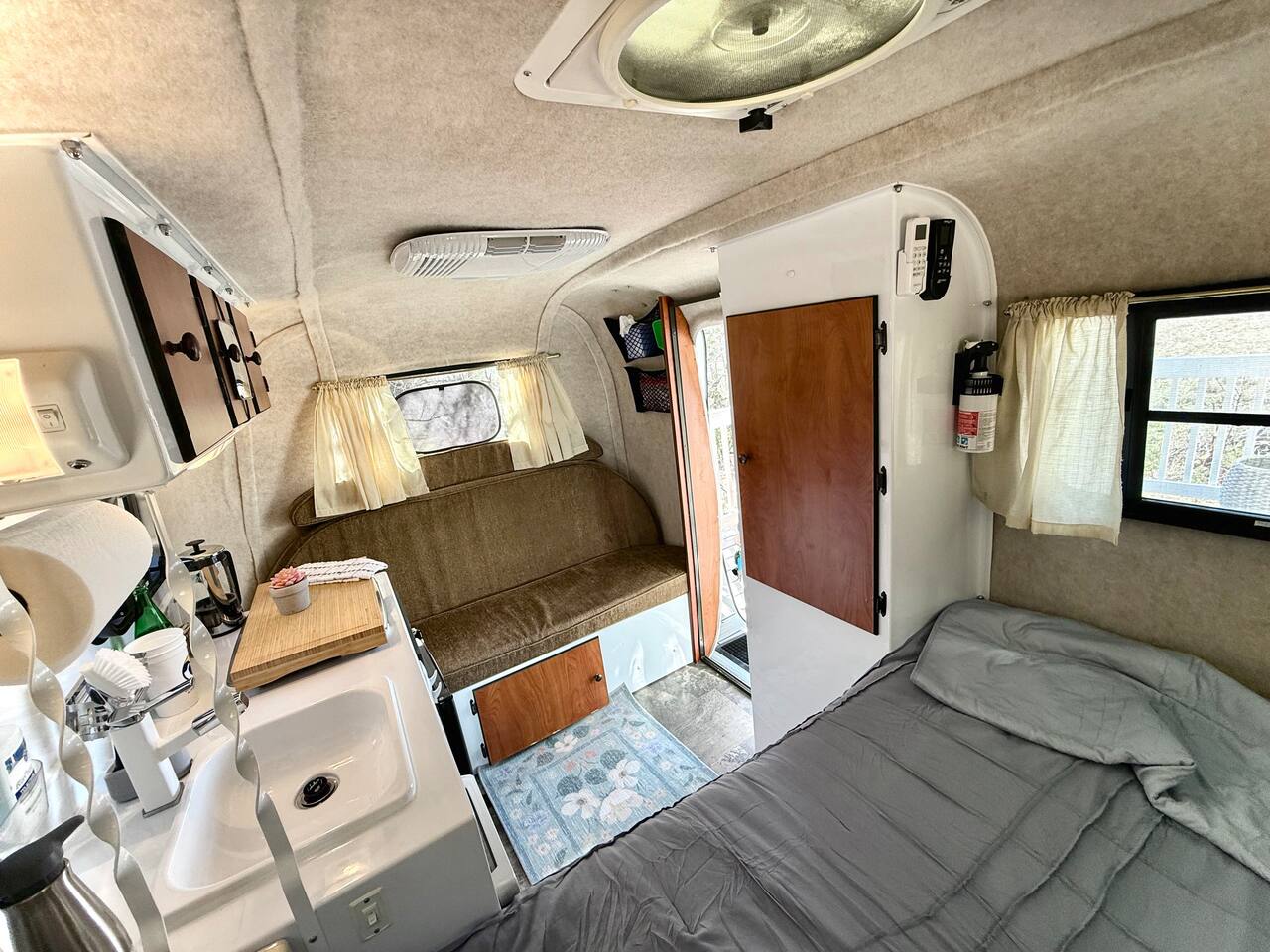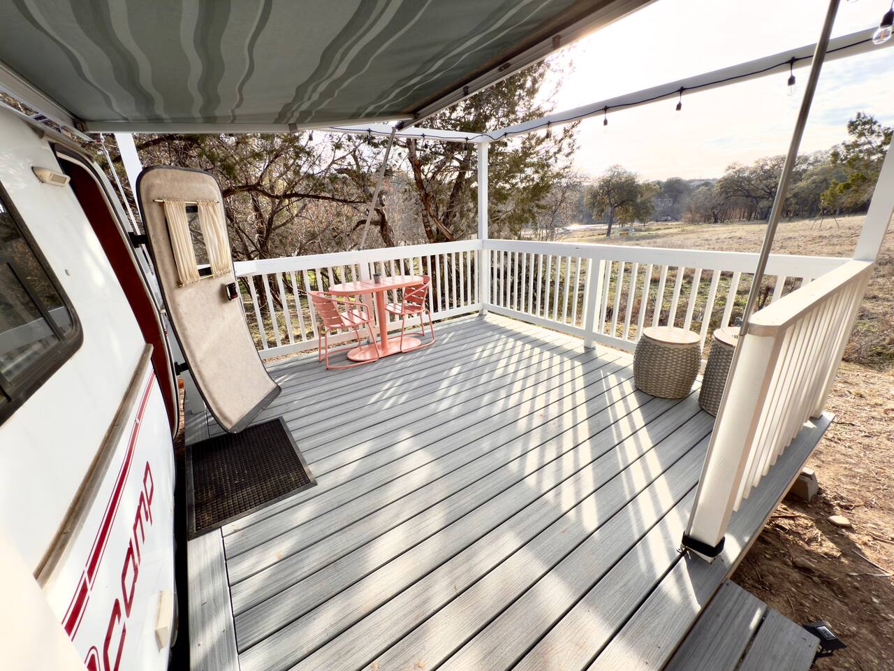 Sparrow Bend River Retreat is a stunning 8-acre multi-site property with riverside tent camping, RV sites, and two unique vacation homes. Nestled beneath a canopy of Texas cedar trees, this magical spot offers access to the spring-fed Medina River, peaceful trails, and star-filled skies. La Palomita at Sparrow Bend is a charming, fully restored 13’ vintage Scamp trailer—perfect for solo travelers or couples seeking a peaceful, nature-immersed escape with a nostalgic twist. Perched on a small rise and surrounded by shady trees, the camper features a cozy bed, a well-equipped kitchenette, and a private deck with string lights and a shaded outdoor dining nook. A stainless steel outdoor sink station makes cleanup easy, and guests have access to clean, modern shared restrooms with hot showers just steps away. Only a short walk from the camper, guests can explore our private 300-yard stretch of the crystal-clear Medina River—ideal for swimming, sunbathing on river rocks, floating in tubes (available for rent), or simply relaxing beneath the towering cliffs and cypress trees. Whether you’re lounging in the shallows, reading by the banks, or enjoying a peaceful morning stroll along the trails, this is where nature and comfort meet. In the evening, dine out in nearby Lakehills (15 min), Bandera (20 min), or Boerne (25 min), or stay in and grill out using the electric grill near the shared restrooms. End the night stargazing or sharing a glass of wine on your private deck under the twinkle lights. NEED MORE SPACE? Check out our larger rentals: Casa Avecita (sleeps 4) and Casa Topo (sleeps 12). You can also reach out about renting the entire property for group gatherings or special events. La Palomita is a truly one-of-a-kind getaway that brings you close to nature—without sacrificing the comfort and charm you love.
