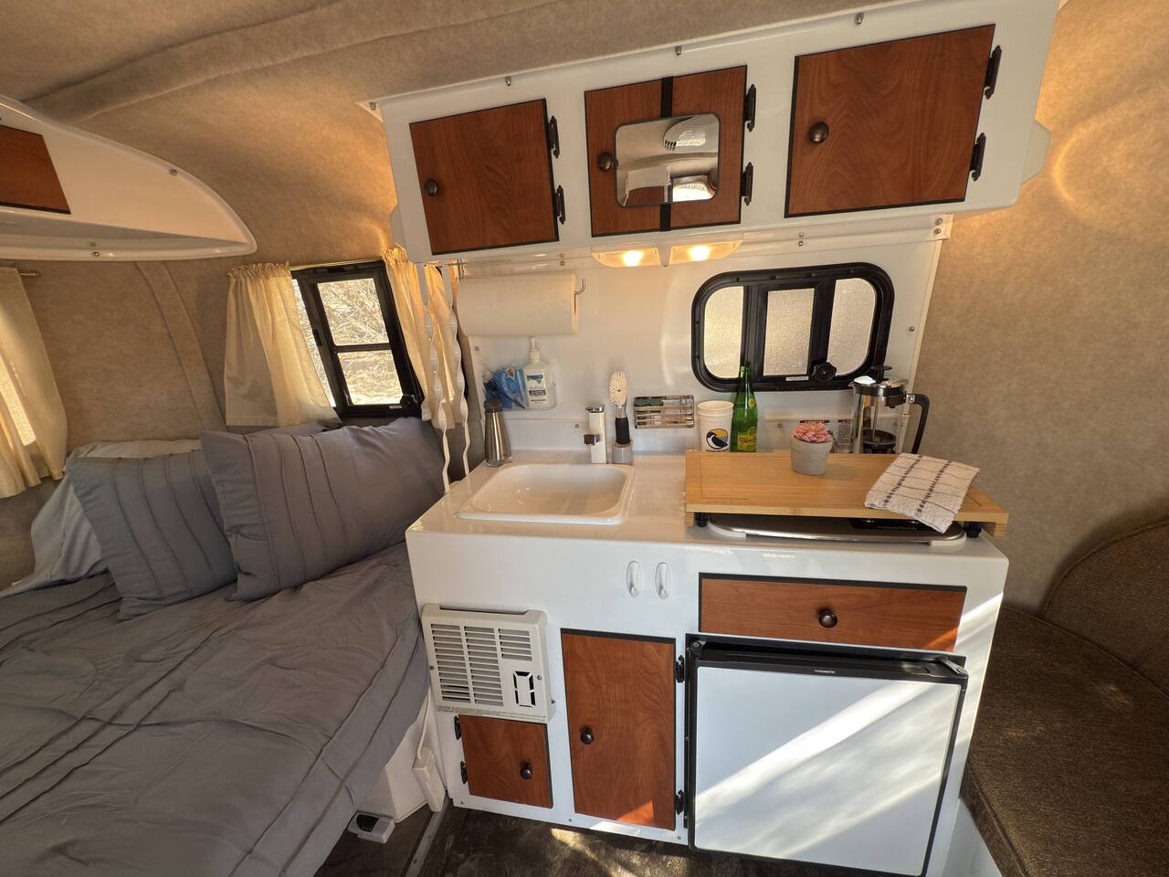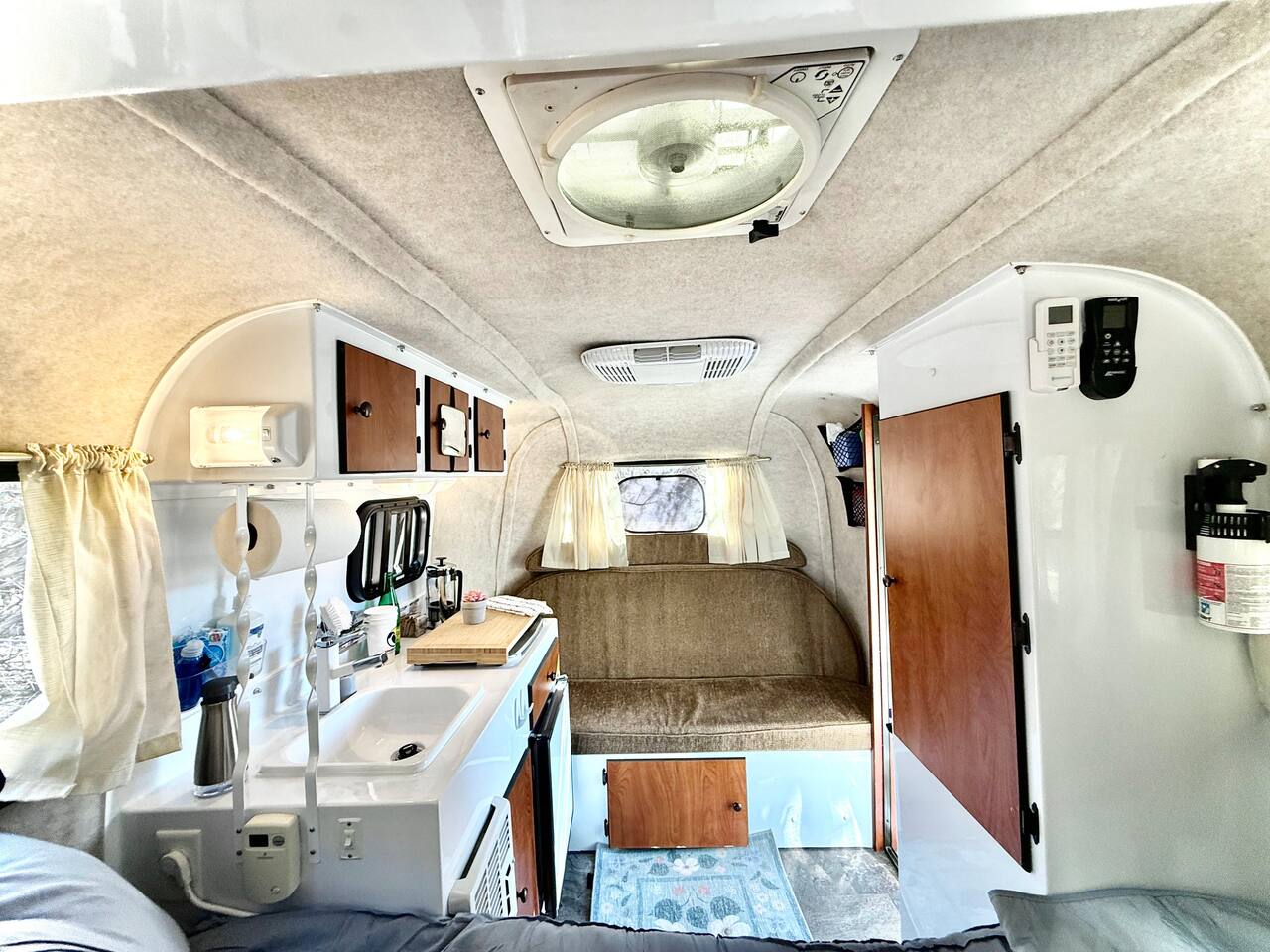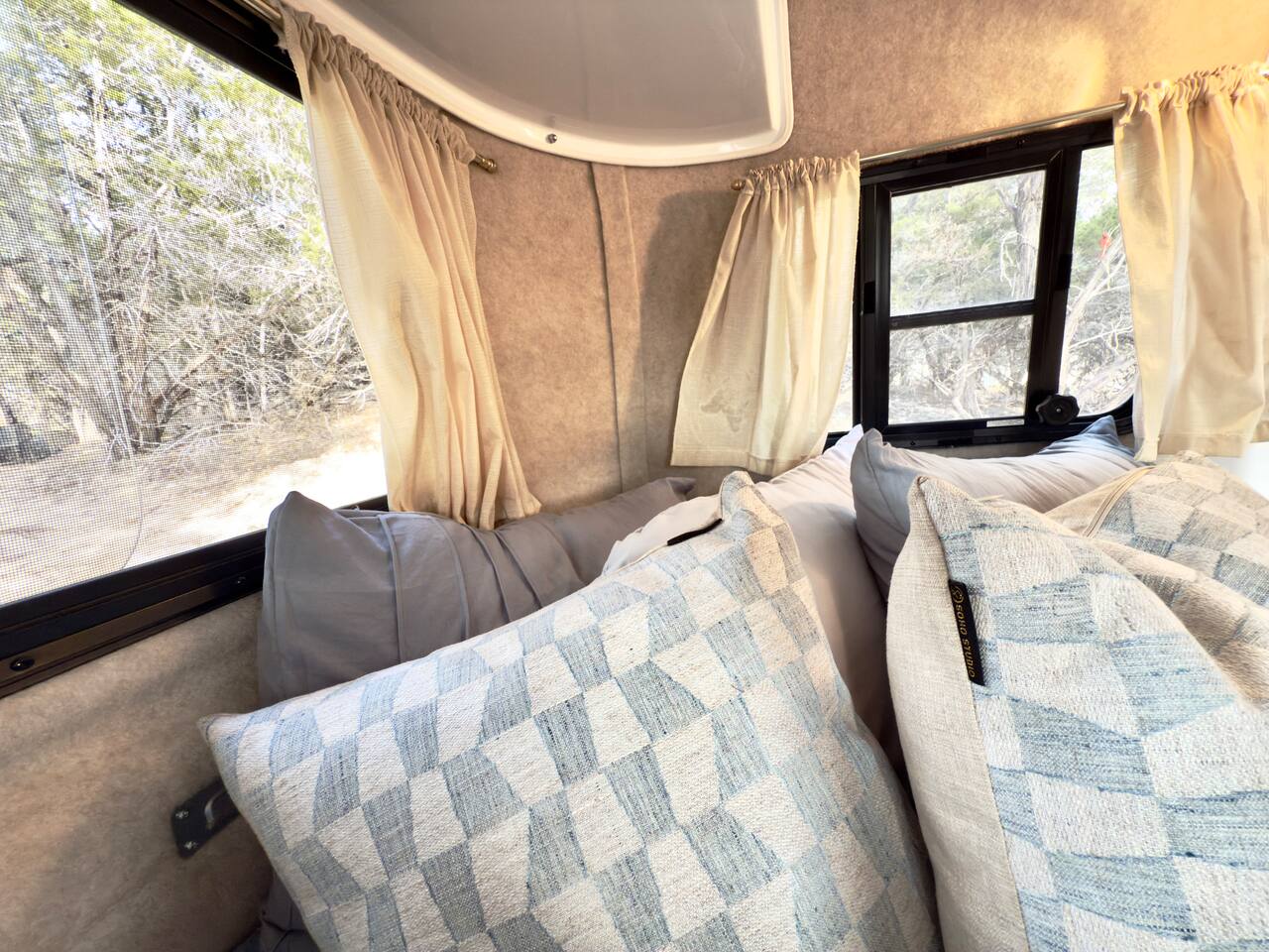 Sparrow Bend River Retreat is a stunning 8-acre multi-site property with riverside tent camping, RV sites, and two unique vacation homes. Nestled beneath a canopy of Texas cedar trees, this magical spot offers access to the spring-fed Medina River, peaceful trails, and star-filled skies. La Palomita at Sparrow Bend is a charming, fully restored 13’ vintage Scamp trailer—perfect for solo travelers or couples seeking a peaceful, nature-immersed escape with a nostalgic twist. Perched on a small rise and surrounded by shady trees, the camper features a cozy bed, a well-equipped kitchenette, and a private deck with string lights and a shaded outdoor dining nook. A stainless steel outdoor sink station makes cleanup easy, and guests have access to clean, modern shared restrooms with hot showers just steps away. Only a short walk from the camper, guests can explore our private 300-yard stretch of the crystal-clear Medina River—ideal for swimming, sunbathing on river rocks, floating in tubes (available for rent), or simply relaxing beneath the towering cliffs and cypress trees. Whether you’re lounging in the shallows, reading by the banks, or enjoying a peaceful morning stroll along the trails, this is where nature and comfort meet. In the evening, dine out in nearby Lakehills (15 min), Bandera (20 min), or Boerne (25 min), or stay in and grill out using the electric grill near the shared restrooms. End the night stargazing or sharing a glass of wine on your private deck under the twinkle lights. NEED MORE SPACE? Check out our larger rentals: Casa Avecita (sleeps 4) and Casa Topo (sleeps 12). You can also reach out about renting the entire property for group gatherings or special events. La Palomita is a truly one-of-a-kind getaway that brings you close to nature—without sacrificing the comfort and charm you love.